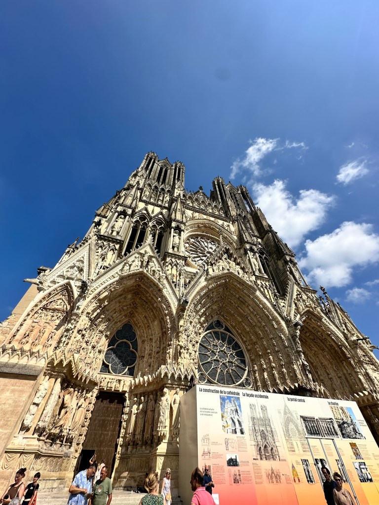 Proseguo verso Reims, città ricca di storia e dominata dalla sua imponente Cattedrale di Notre-Dame, dove un tempo incoronavano i re di Francia. Appena sono entrata in città, però, mi sono ritrovata davanti a un enorme cantiere che bloccava praticamente tutte le vie per la cattedrale. Seguendo l’istinto, ho imboccato una strada sterrata… ma dopo pochi metri ho deciso di fare inversione a “U”, col dubbio che forse non ci potessi entrare per i lavori!